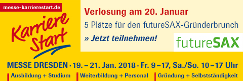 Am Messesamstag, den 20. Januar, lädt futureSAX - die Innovationsplattform des Freistaates Sachsen - zum Gründerbrunch ein. Die Veranstaltung findet von 10:30 bis 13:30 Uhr im Saal Rotterdam (Halle 3) im Rahmen der KarriereStart statt. Interessenten können hier die Chance nutzen, um sich unkompliziert mit Experten und anderen Start-Ups über gründungsrelevante Themen auszutauschen und wertvolle Hinweise und Kontakte in den Bereichen Förderung, Mentoring, Finanzierung, Markteintritt und vielem mehr zu erhalten.